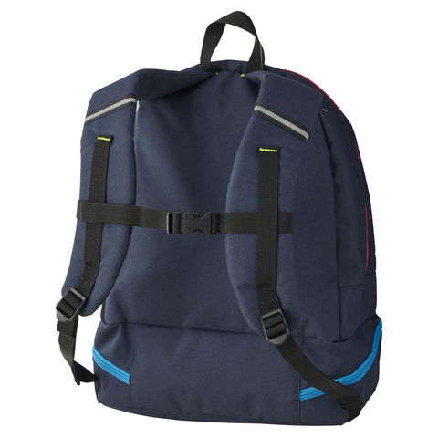 ボール収納ネット、砂抜けメッシュ機能のシューズルーム、ショルダーベルトにはリフレクター付。