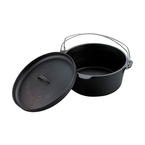 素材:【ダッチオーブン本体・ふた】鉄鋳物【表面加工】油焼き(焼付塗装) 【つる】ステンレス鋼【リッドリフター】鉄(電着塗装)【収納バッグ】ポリエステル