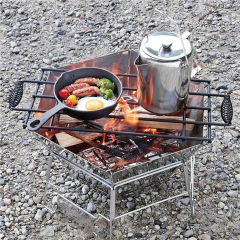 焚き火台やBBQグリルで、スキレットやダッチオーブン、クッカーやフライパン、ケットルなどの調理ができる!