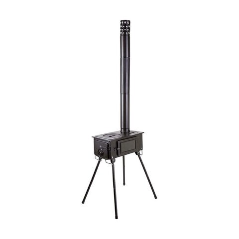 アウトドアシーンに合わせた角型のかまど煙突ストーブです。