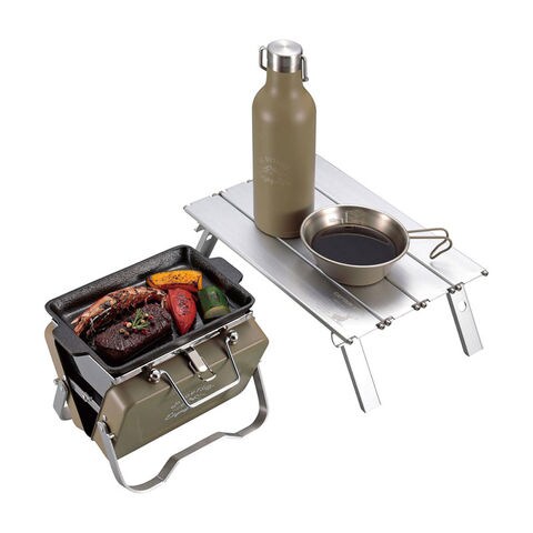 ソロキャンプやお花見・行楽に最適なコンパクトサイズのV型卓上グリル。