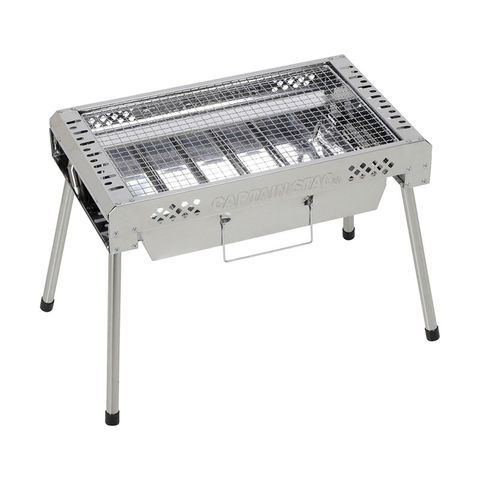 素材:本体フレーム・炭入・脚:ステンレス鋼 バーベキュー網・ハンドル:鉄〈クロムめっき)