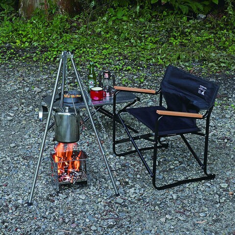 ハイ1m14cm&ロー78cm、2WAYでの使用ができる焚き火三脚。