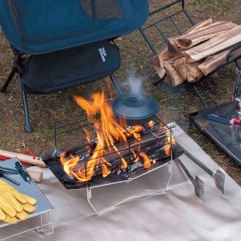 ソロキャンプやツーリングに最適な、軽量コンパクトな焚き火台。