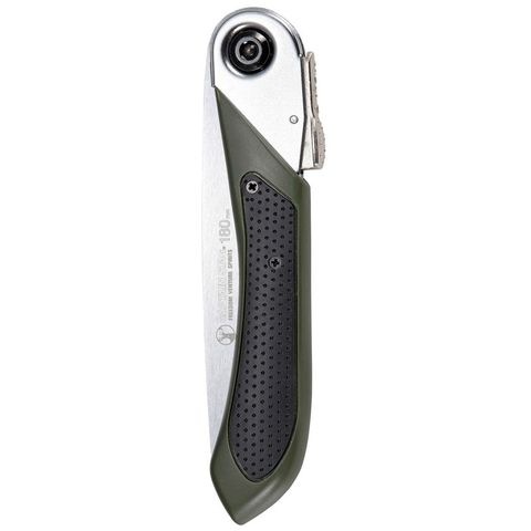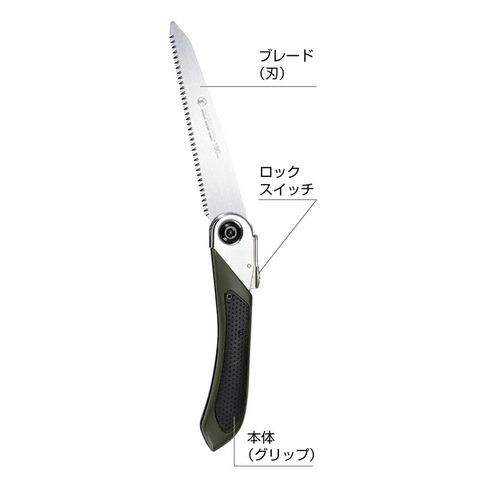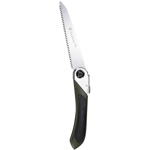 薪や枝の切断に便利な折りたたみ式ノコギリ。