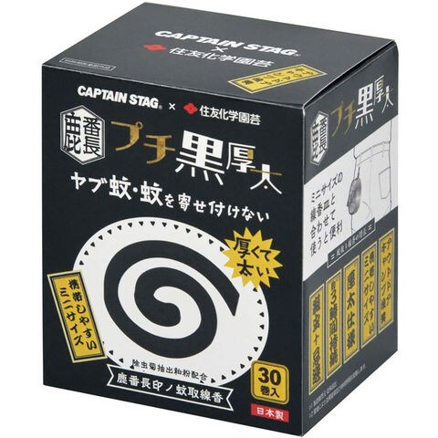 CAPTAIN STAG キャプテンスタッグ 鹿番長印ノ蚊取線香 プチ黒厚太 30巻 CS×住友化学園芸 アウトドア 虫除け・殺虫剤 um1647
