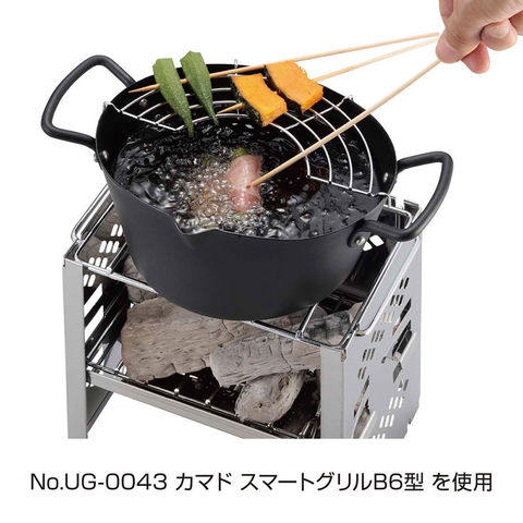素材:【本体】鉄(シリコーン樹脂塗装)【取っ手】鉄(焼付塗装)【アミ】鉄(クロムめっき)