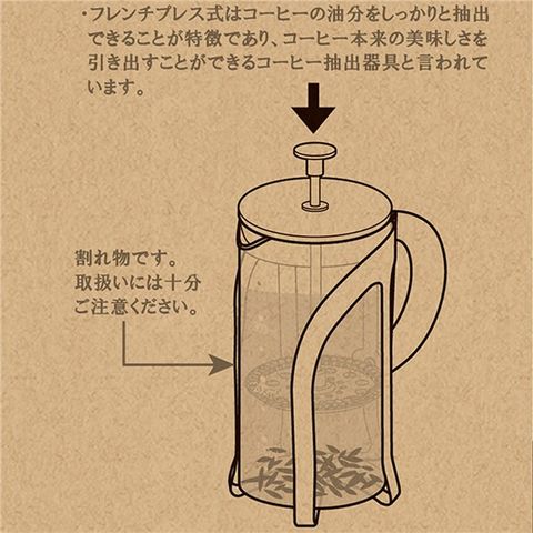 フレンチプレス式で本来の旨味と香りを楽しめます。