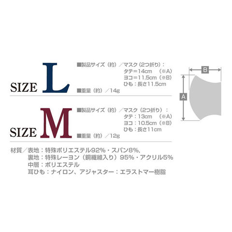 素材:【表地】特殊ポリエステル92%・スパン8%【裏地】特殊レーヨン(銅繊維入り)95%・アクリル5%【中層】ポリエステル【耳ひも】ナイロン【アジャスター】エラストマー樹脂