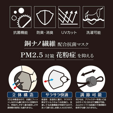 高い消臭効果を持つ銅の働きで、汗や口臭、加齢臭などのいやなニオイを抑制し短時間で消臭します。