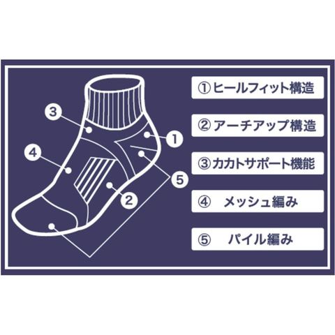 機能:吸水速乾、抗菌防臭、パイル編みのため衝撃吸収