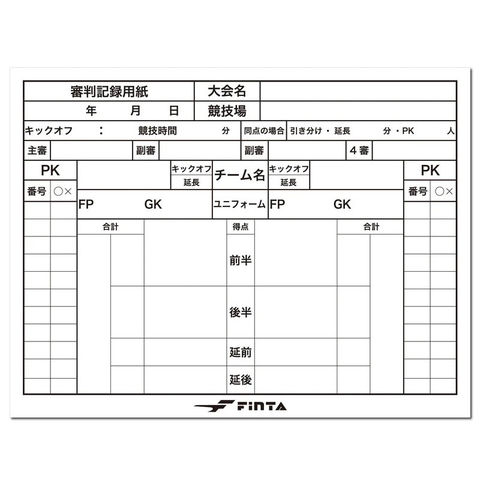 フィンタ レフェリー記録用紙10枚セット(ハーフサイズ)