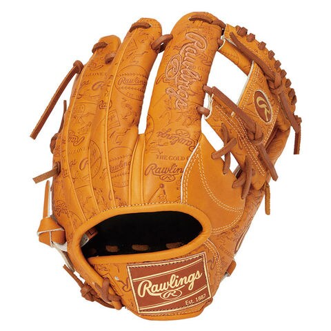 ローリングスロゴをのレザーにスタンプした軟式用限定グラブ