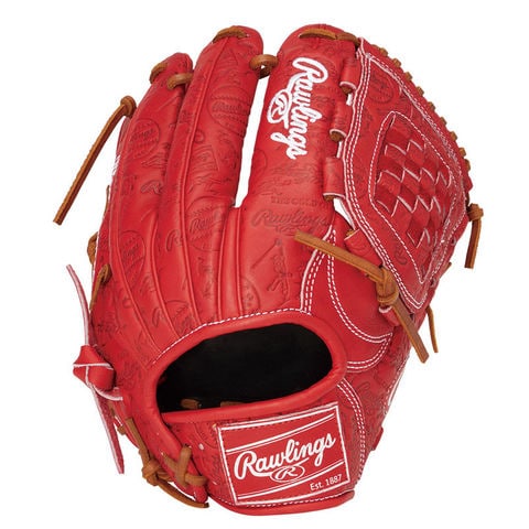 ローリングスロゴをのレザーにスタンプした軟式用限定グラブ