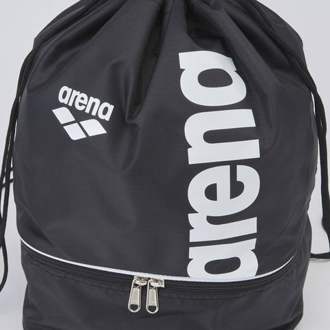 arenaロゴをスポーティにアレンジした2ルーム仕様のプールバッグ。
