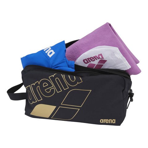 arenaロゴをスポーティーにアレンジした、1つ持っているとスイマーに便利なバッグ。