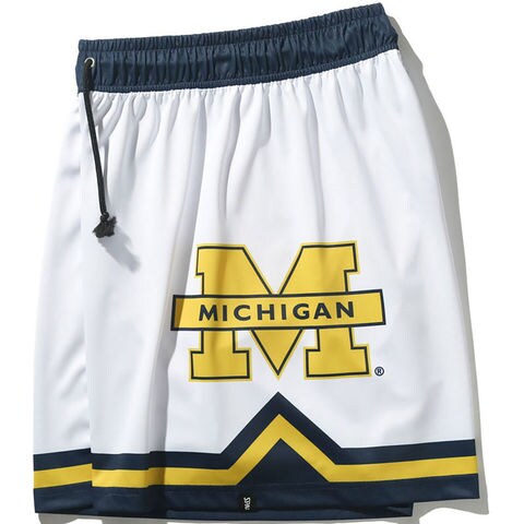 MICHIGANのアイコンMロゴを大きく配したラインショーツ。
