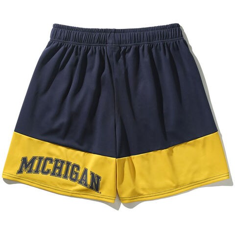 MICHIGANロゴを右後腿にアーチに配した切り替えパンツ。