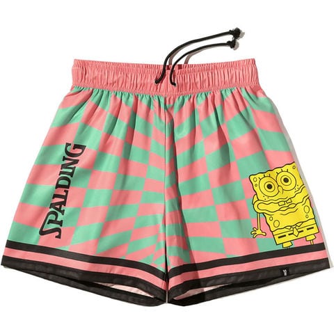 SPALDING スポルディング 布帛ショーツ スポンジ・ボブ チェッカーフラッグ バスケットボール WUPフハクハーフ・3/4パ・ smp25047s-6243