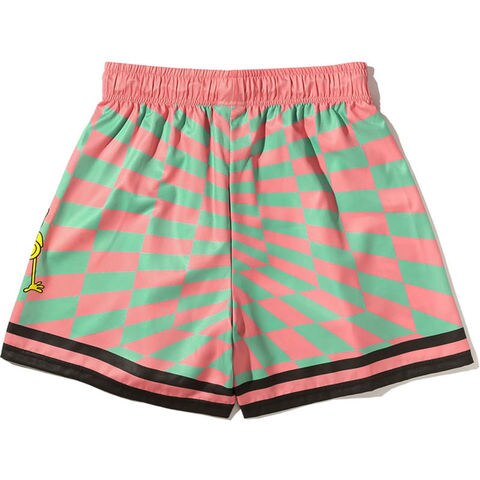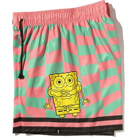 カラフルなチェッカーフラッグ柄がポップなスポンジ・ボブデザインの総柄布帛プリントショーツ。