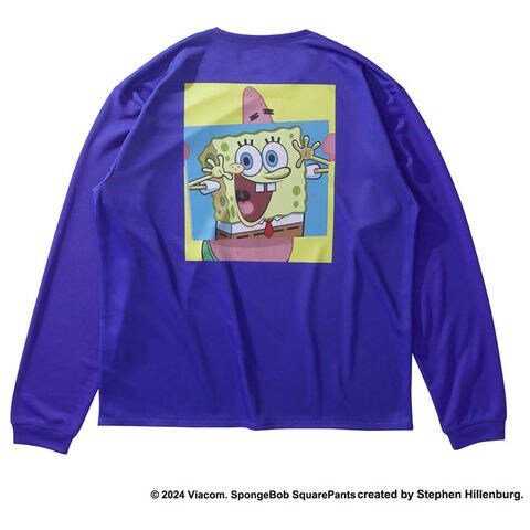 スポンジ・ボブの顔を持ったパトリックのイラストを大きくプリントしたバックプリント長袖Tシャツ。