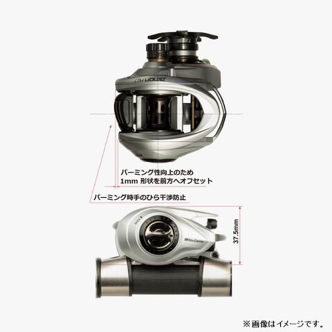 レベルワインドをよりリール前方側に配置することで、スプールとレベルワインド間の糸の導入角度を縮小。
