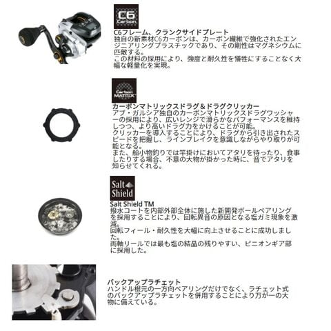 1台でタイラバ、イカメタル、バチコンアジングなどのライトゲームから、ライトビシアジ、ライト五目、太刀魚テンヤ等の沖釣りまで楽しめます。