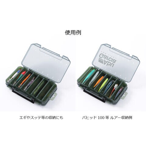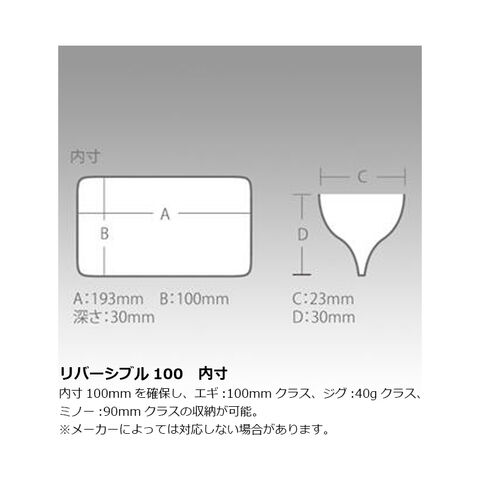 ●内寸100mmを確保し、エギ:100mmクラス、ジグ:40gクラス、ミノー:90mmクラスの収納が可能。