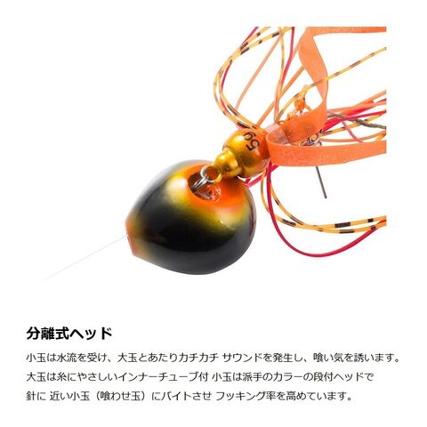小さい喰わせ玉が、水流でアクションし、音や派手な色合いで喰い気を誘う新しいタイプのタイラバです。