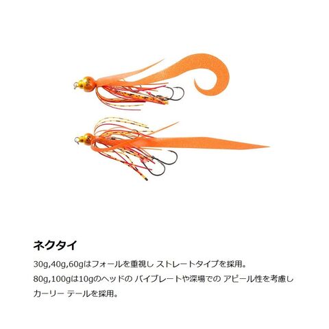 低活性時や、ネクタイの破損時にマダイの釣果に抜群の実績を誇るガルプが装着可能。