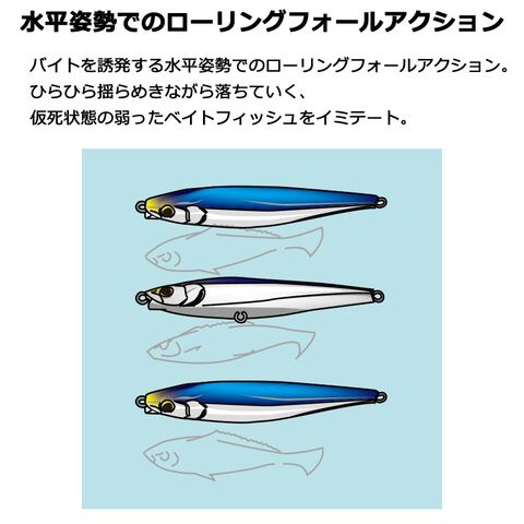 ■水平姿勢でのローリングフォールアクションで、弱ったベイトフィッシュをイミテート