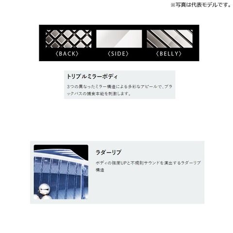 3つの異なったミラー構造による多彩なアピールで、ブラックバスの捕食本能を刺激します。