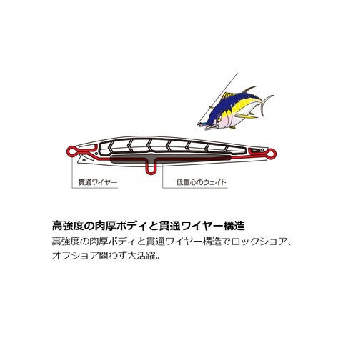 高強度の肉厚ボディと貫通ワイヤー構造でロックショア、オフショア問わず大活躍。