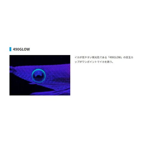 イカが見やすい発光色である「490GLOW」の目玉カップがワンポイントでイカを誘う。
