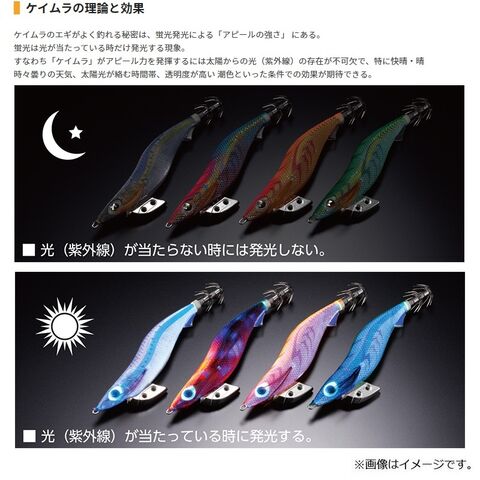 ケイムラのエギがよく釣れる秘密は、蛍光発光による「アピールの強さ」 にある。