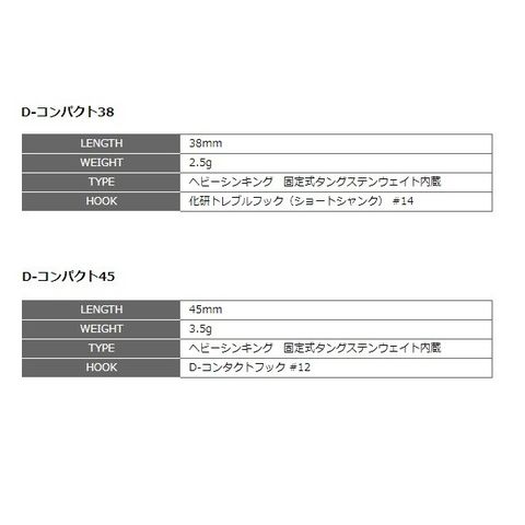 しっかり信号を伝えてくれる泳ぎと3.5g(D-コンパクト45)2.5g(D-コンパクト38)というウエイトがもたらすサクサクとした操作性はアクション演出を容易にし、集中力をも高めてくれる。