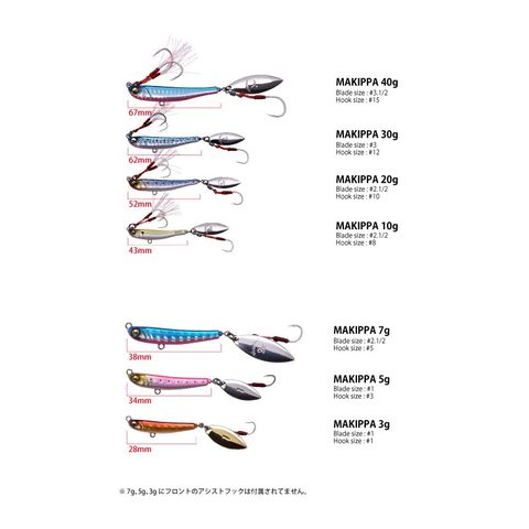 ※ 7g、5g、3gにフロントのアシストフックは付属されてません。