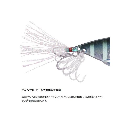後方にティンセルを搭載することでメインラインへの絡みを軽減し、生命感溢れるフラッシング効果を生み出します。
