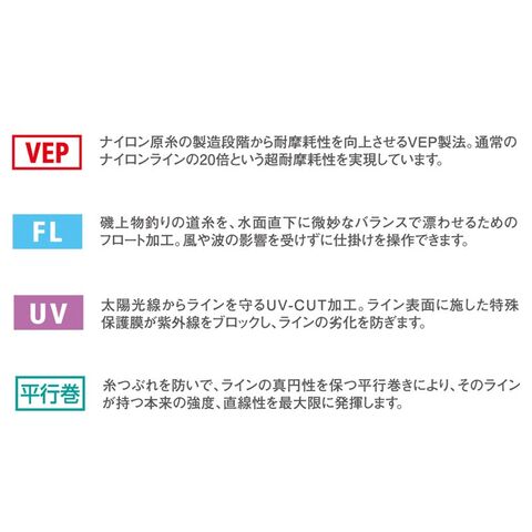 超耐摩耗性原糸「VEP」(VARIVAS EXTRA PROTECT NYLON LINE)の磯用ライン、
