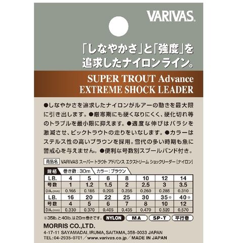 バリバス スーパートラウト アドバンス エクストリーム ショックリーダー(ナイロン) 30m 22LB 6号 ブラウン / ネイティブトラウト専用ショックリーダー