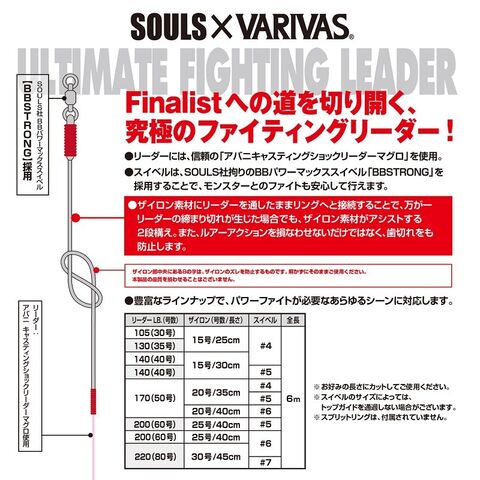 ・規格:リーダー:200LB.(60号)/ザイロン:25号(40cm)/スイベル:#6