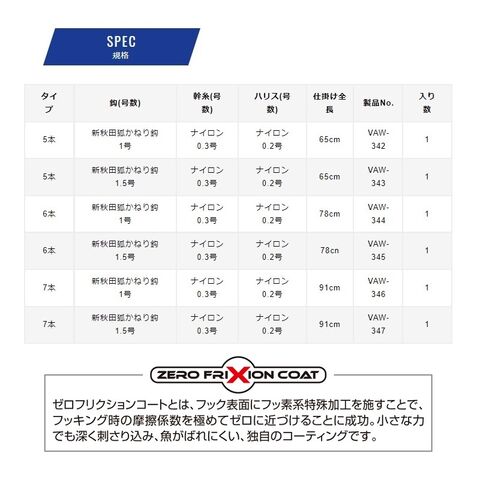 ●鈎にVARIVAS独自のゼロフリクションコートを施すことで刺さり抜群。