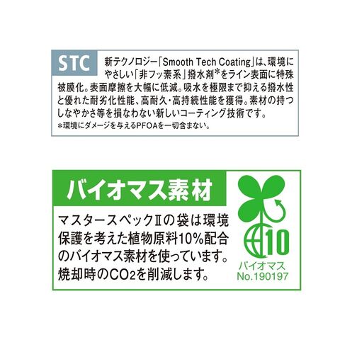 ラインを紫外線や湿気から守る袋には、環境にも優しいバイオマス素材を採用しています。