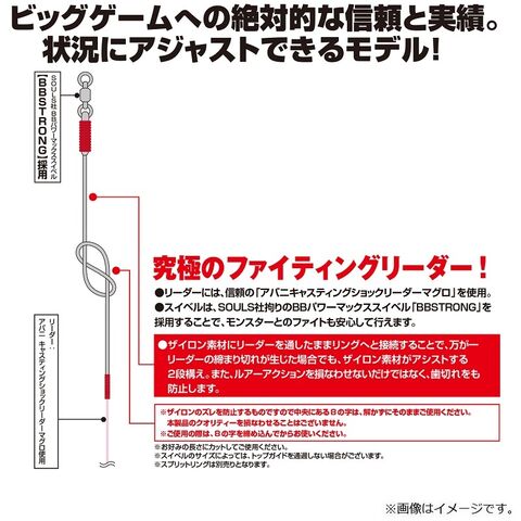 ●規格:リーダー:130LB.(35号)/ザイロン:15号(10cm)/スイベル:#4