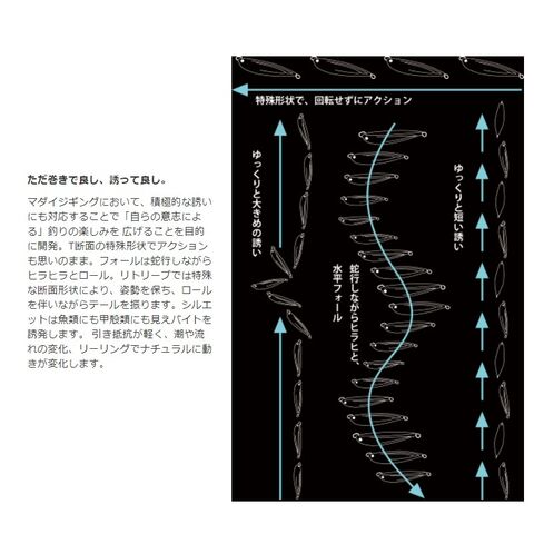 引き抵抗が軽く、潮や流れの変化、リーリングでナチュラルに動きが変化します。