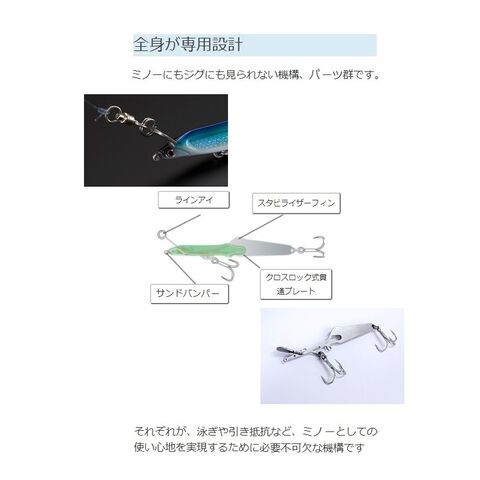 食わせに特化した細身のボディながら、大型フックにも対応する新機構「セカンドアイ」を搭載し大型魚への対策も万全です。
