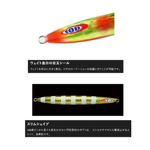 ジグが回転してもタチウオに違和感を与えにくい円柱形状です。