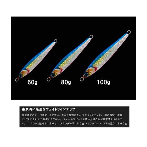 東京湾でのシーバスゲームで中心となる3種類のウエイトをラインナップ。