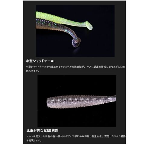 小型シャッドテールから生まれるナチュラルな微波動が、