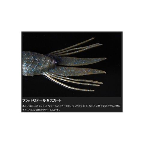 横方向の扁平ボディとフラットテール+スカートが水の抵抗を受けてよりスローにフォールし、